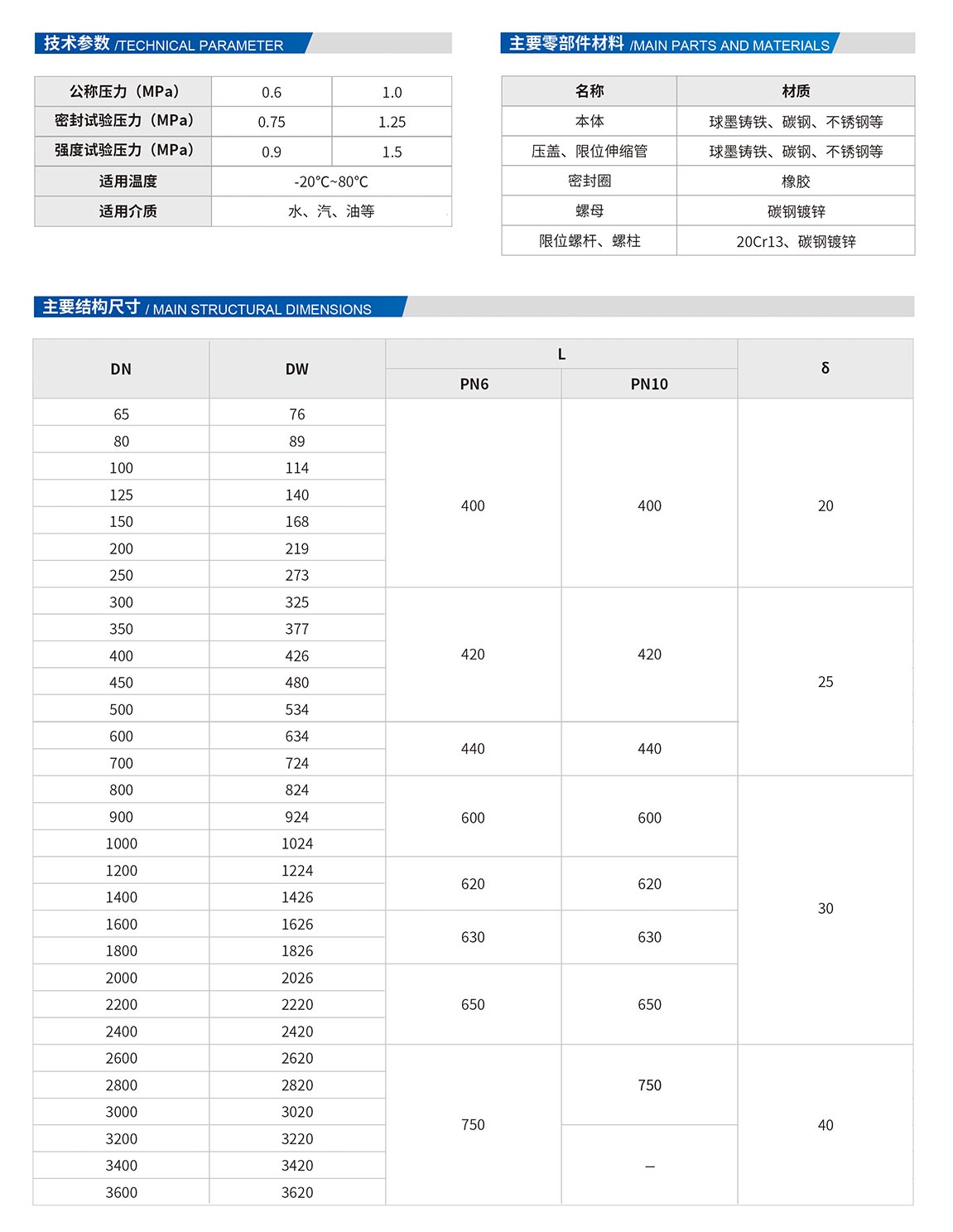 產(chǎn)品概述:松套傳力接頭是由松套伸縮接頭和短管法蘭、傳力螺桿等構(gòu)件組成。