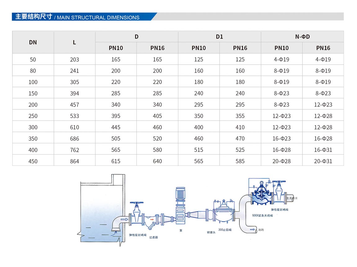 900X緊急關(guān)閉閥,是一種用于消防用水與生活用水并聯(lián)的供水系統(tǒng)中,用來調(diào)配供水方向的閥門。當火災(zāi)發(fā)生時,消防急需大量用水,900X緊急關(guān)閉閥立即切斷生活用水,確保足夠的消防用水:當消防停止用水壓力減小時,閥門自動打開,呈常開狀態(tài),恢復(fù)生活供水。該閥使系統(tǒng)無須另設(shè)專門的消防單獨供水管網(wǎng),大大地節(jié)約了建設(shè)成本和用水量。閥門控制靈敏度高,安全可靠,調(diào)試簡便,使用壽命長。