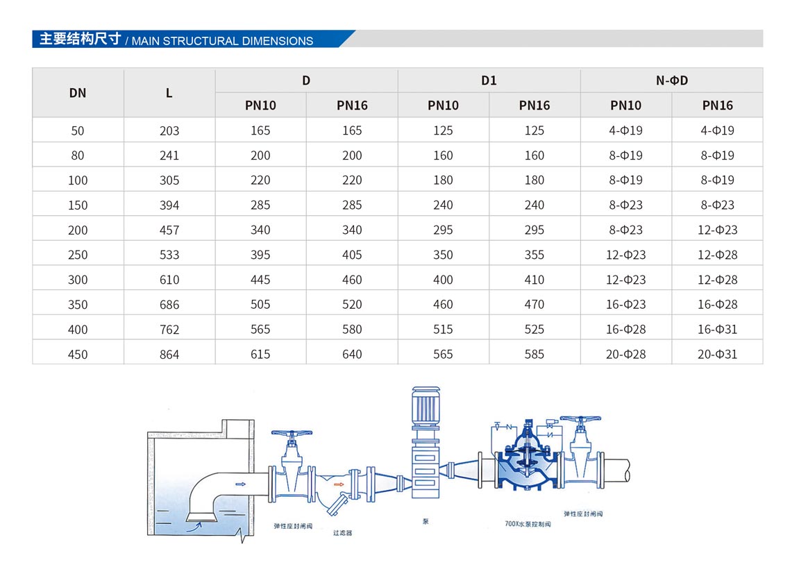 700X水泵控制閥,是一種安裝在高層建筑以及其他給水系統(tǒng)的水泵出口處,防止介質(zhì)倒流的逆止類閥門。當水泵即將停止供水前,閥門先行緩幔關(guān)閉90%左右,防止突然停泵而產(chǎn)生的水錘和水擊聲:當水泵完全停止后,閥門再完全關(guān)閉,防止泵出的水回流,有效地保護水泵,免受回流的沖擊而產(chǎn)生反轉(zhuǎn)。該產(chǎn)品是水泵出口必不可少的保護裝置。閥門呈流線型設(shè)計,通過電磁閥的導控實現(xiàn)準確的啟閉,使用安全可靠,有效地防止水錘和水擊聲,使用壽命長,安裝、維修方便。