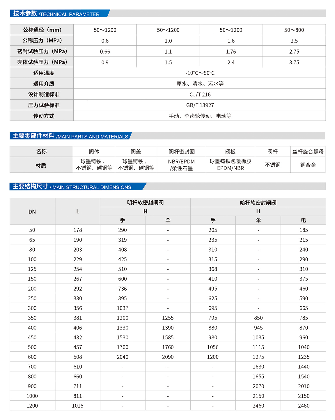 3、閘板橡膠與鑄鐵骨架之間粘間強度高。鑄鐵骨架外表面全部包覆橡膠;包膠厚度均高于國家標準規(guī)定,包膠工藝采用先進的注膠成型技術,成型后的閘板表面光潔無缺陷,橡膠厚度均勻其粘合強度高,彈性好,使用壽命長。