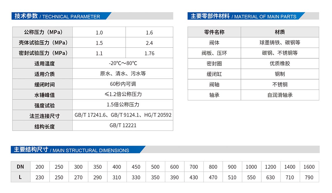 蝶形緩閉止回閥主要用于凈水、原水、污水、海水等介質(zhì)的供、排水管道上,安裝在水泵出口處,用以截斷介質(zhì)的回流,消除水錘,保護(hù)管道、水泵的安全運(yùn)行。其主要特點:體形小、重量輕、結(jié)構(gòu)長度只有旋啟式止回閥的三分之一左右。帶外置阻尼油缸,緩閉性能優(yōu)良,不受管道中介質(zhì)的影響,閥瓣先速關(guān)后緩閉,可防止破環(huán)性水錘。橡膠軟密封,結(jié)構(gòu)密封性能好,耐磨損,使用壽命長。橡膠緩沖,運(yùn)行平穩(wěn),無震動及噪音,比老式止回閥流阻小,有明顯的節(jié)能效果。