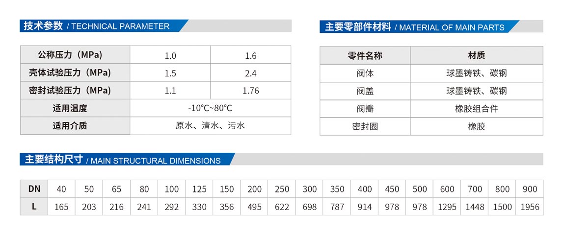 采用全流面積式設(shè)計,水頭損失小,不易堆積雜物,密封采用斜板式設(shè)計,關(guān)閉行程短,閥瓣采用橡膠與鋼板經(jīng)高溫壓制而成,耐沖涮,密封性能好,產(chǎn)品結(jié)構(gòu)簡單、維護和保養(yǎng)方便。